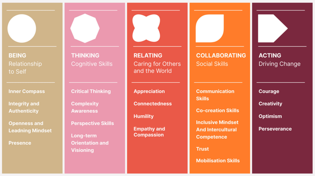 The five dimensions of goals are further elaborated as 23 skills.